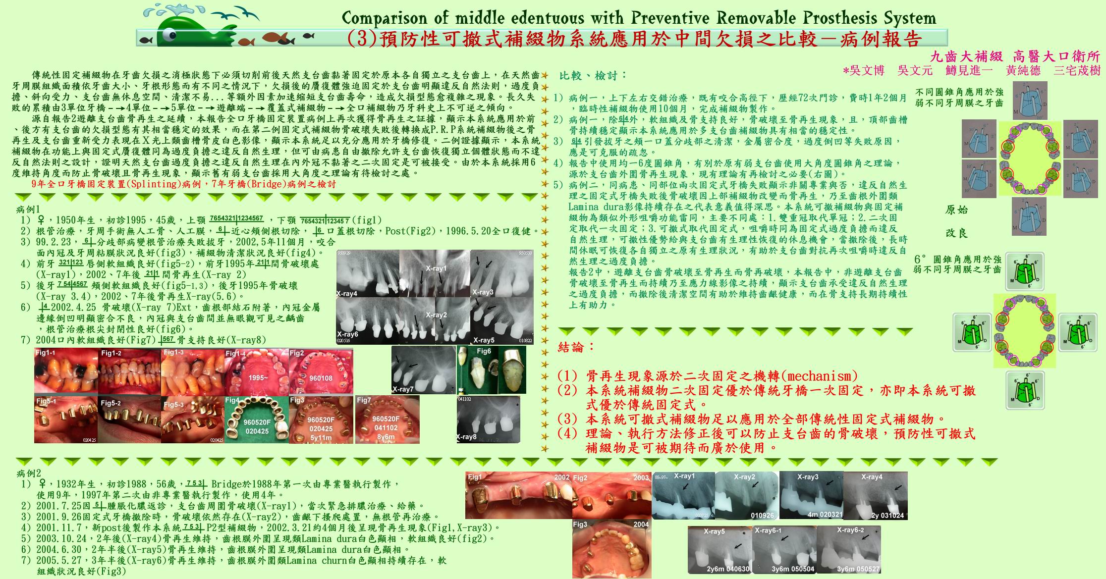 德國KONUS可撤式雙層冠在 德國及日本等 早已臨床研究多年,從下圖臨床研究報告中可看出天然牙齒周圍齒槽骨頭再生現象(細菌沒有再大範圍繼續侵蝕骨頭),代表拿下來清潔之設計是有其原理。