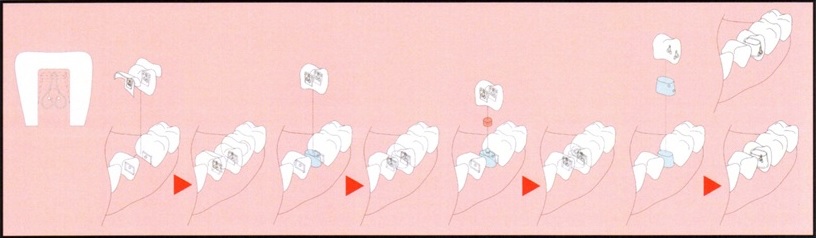 帽扣式彈夾牙主要分為內冠及外冠,內冠是必須非常精密誤差極小才能夠保護動搖牙齒。內冠上會有橡皮帽扣之凸點卡榫用來抓住外冠,而外冠會有橡皮帽扣用來抓住內冠。